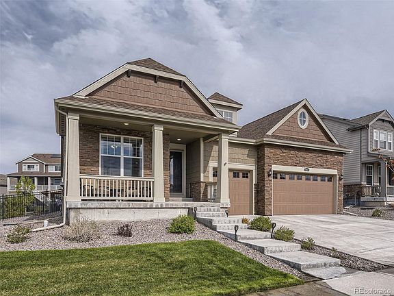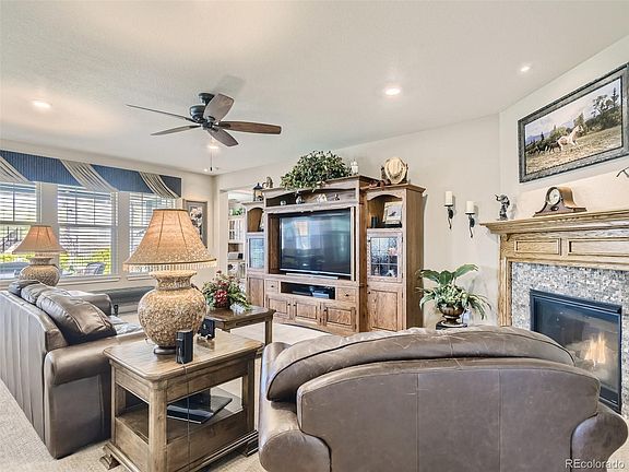 Buy This Home and We'll Buy Yours!* TAKE ADVANTAGE OF A QUALIFIED ASSUMPTION VA LOAN AT 2.25% FIXED! CURRENT P&I IS $2,265.18 WITH A CURRENT LOAN BALANCE OF $555,798.* Discover the epitome of luxurious living in this expansive ranch-style home nestled within the Blackstone CC community. Boasting an impressive 2,773 square feet on the main level, this home offers a perfect blend of modern upgrades, spacious interiors, and an unfinished full basement ready for your personal touch. The open floor plan seamlessly connects the Cozy Great Room with Gas Fireplace & Upgraded Mantle, Casual & Formal dining, and a Gourmet Kitchen, creating a harmonious flow ideal for both relaxing and entertaining. The gourmet kitchen, will delight even the most discerning chefs. Adorned with top-of-the-line stainless steel appliances featuring double ovens, gas range, microwave and refrigerator, sleek countertops, & ample storage space in the upgraded pantry, this culinary haven is a dream come true. Whether you're hosting intimate gatherings or preparing family meals, this kitchen is sure to inspire your inner chef. The spacious primary suite offers a serene atmosphere, while the attached sitting area and primary 5 piece bathroom presents a oasis with a deep soaking tub, a separate glass-enclosed shower, and dual vanities. A large walk-in closet with upgraded cabinetry provides an abundance of storage space. An additional generously sized bedroom provides versatility and comfort, accommodating family members or guests with ease and the main floor study that can flex as the 3rd bedroom has easy access to the backyard and is great for those who work from home. The exterior of this home is equally impressive. The ranch exudes timeless charm and curb appeal, while the professionally landscaped yard provides a picturesque setting for outdoor enjoyment. Breathe in the fresh Colorado air as you relax on the patio or screened deck for privacy. *cond apply*