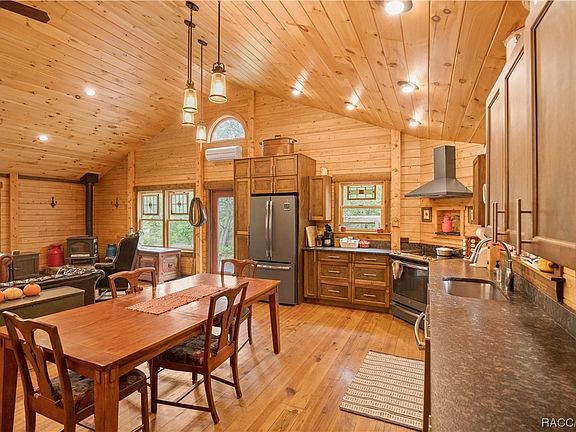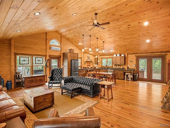 Beautiful Custom-Built Ward Cedar Log Home in Brooksville, FL! Built in 2018, this gorgeous cabin sits on just under five acres adjoining over 100,000 acres of the Withlacoochee State Forest, offering the ultimate in privacy. The cabin has two bedrooms, two full baths, and a loft that can be converted into another bedroom. With an open floor plan, the main space is perfect for entertaining guests or relaxing with family. As you enter the home, you'll be welcomed with the combined scents of cedar and pine. The solid, wood-plank floors are local Florida pine, each piece being hand-picked for its color and beauty. There is white pine on the ceilings and the exterior walls are solid white cedar along with a tongue & groove cedar wall in the great room. All wood has been finished with 0-VOC, eco-friendly products. The kitchen boasts beautiful leathered granite counter tops with all matching GE appliances and soft close cabinetry. The highly-efficient, Woodstock soapstone wood-burning stove can heat the entire home. Soapstone countertops in both bathrooms. Delta fixtures. Low-E Anderson windows. Enjoy the mature mulberry, peach, plum and loquat fruit trees as well as various native berries and edible plants. Several spots have amended soil, making growing your own permaculture organic garden a breeze. There is a concrete slab under the house creating a convenient crawl space to use for storage, repairs or even shelter! This property also has a 50-amp RV hookup with water & dump station for in-laws or traveling guests. Two sheds on the property AND a tankless hot water heater! There is also an air conditioned pet room connected to the home.