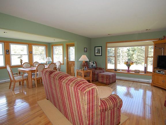 Wait till you see how much beautiful living & entertaining areas this ranch style home offers! Spacious eat-in kitchen is open to the dining room, living room with fireplace, & 4 season room. Send the kids or other half to the well appointed finished basement- complete with wet bar, wood burning fireplace, & half bath. Home is completely updated and has gorgeous hardwood floors, solid oak cabinets, & Andersen Frenchwood doors. Heated 4 season room has impeccable tongue & groove paneling, cathedral ceiling, & spectacular Elk Mountain ski slope view. One car attached garage. Plus detached oversize 2 car garage with truss roof, concrete floor, electric/cable/phone lines.