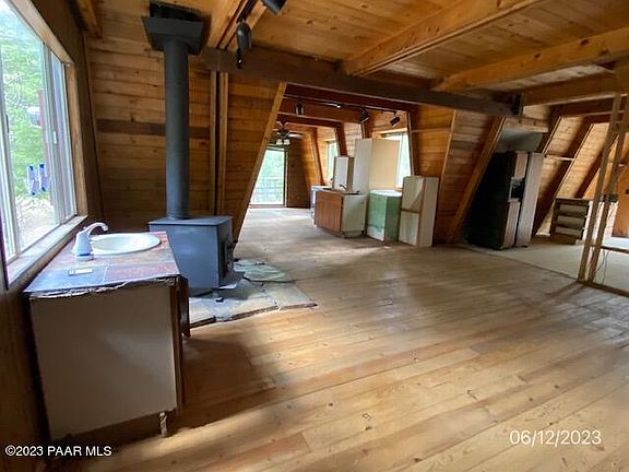 Welcome to Breezy Pine, your escape from the scorching heat of the summer and a sanctuary nestled among the picturesque pine trees of Prescott. This 1619 square foot vacation home offers the perfect opportunity to create your dream retreat, as it awaits your personal finishing touches. With 2 bedrooms, 2 bathrooms, and situated on approximately 1 acre of land, this serene property offers a tranquil oasis in the cool embrace of a 6000-foot elevation.The secluded location, surrounded by towering pine trees and nearby stream, ensures maximum privacy and an immersive connection with nature. Whether you seek solitude or a gathering place with friends and family, this home offers the best of both worlds. The 2-car attached garage provides convenience and ample storage for your vehicles or