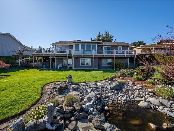 First time ever to the market, beautiful custom home in the Birch Bay Village gated community, UNOBSTRUCTED VIEWS! On the bluff, with a lower backyard, it's like a private park setting. This 3 bed, 3 bath, 1300 sq. ft. upstairs & 1275 sq. ft. fully finished daylight basement with stunning views of Birch Bay & Mt Baker from both levels of the home. Meticulously maintained, features include vaulted ceiling with extra-large windows in the living room, Hunter Douglas blinds throughout, high end finishes, & primary bedroom with ensuite bath. Cambria quartz countertops in the kitchen with easy access to the deck, perfect for outdoor entertaining. Upgrades & updates too numerous to mention, see list. BBV amenities, community pool, private marina.
