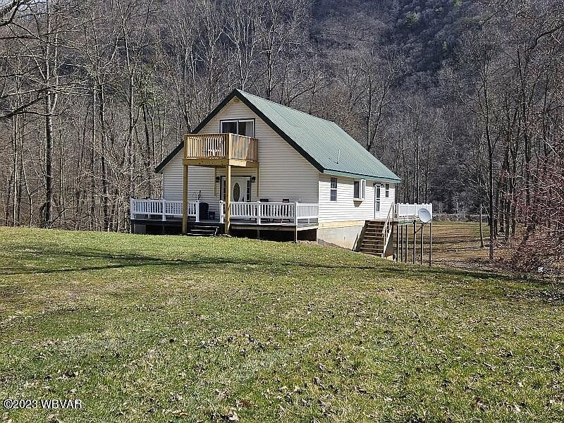 Beautiful chalet near Hyner with Susquehanna River frontage! Make this your residence, vacation home or rent it out for extra income! You will love the wrap-around deck and huge windows overlooking the river! Views of the mountain and gorgeous acreage. Light and airy interior with open floor plan.