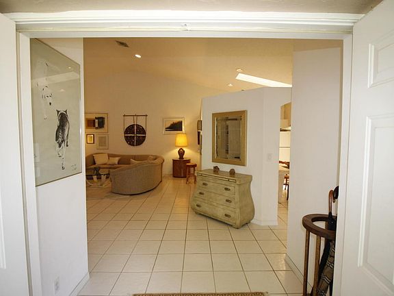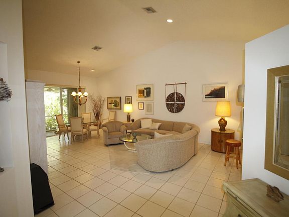 Rarely comes up for sale: 3/2 with two-car garage corner villa in Villa San Remo. Split bedrooms, hurricane shutters, private rear screened patio, lush garden. Tile floors in common areas, carpeted bedrooms. Needs updating.Newer a/c, extra water heater.Manned gate 24/7. Great club house just renovated. Fee includes cable. There will be a roof assessment. Roof will be replaced within 24-months. Assessment will be lower or higher depending on the number of homeowners who pay the cost in full. Approx. $60 per month for the first two years. Current monthly fee: $87 to Neighborhood F, and $216 to master. Grounds upkeep, cable TV, exterior painting, power washing, tree trimming, club house all included in fees.