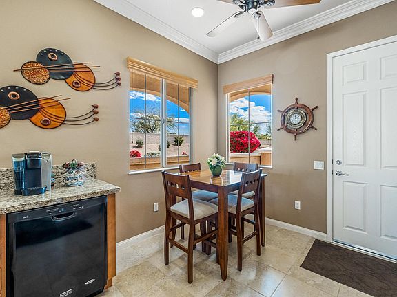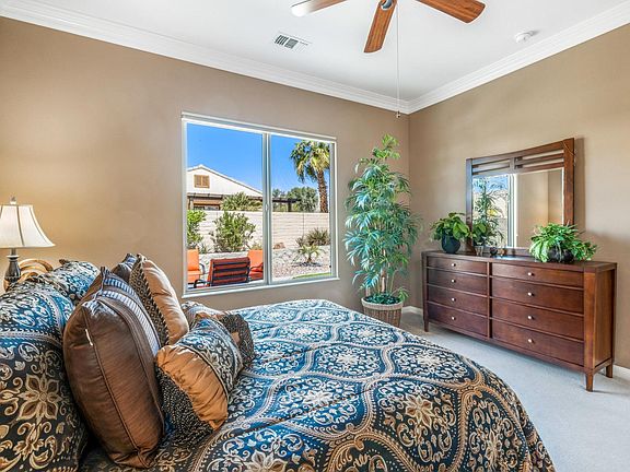 Booked Feb- April 2026 THIS IS NOT A LONG TERM RENTAL. This is a 55+ community Fabulous Sun City Shadow Hills Home. Light & bright meticulously maintained Canterra model. 2 bedrooms, 2 baths, this floorpan offers 1257 sq ft of open living space.The greta room has 10 ft ceilings, crown molding, and large windows providing ample natural light and views. The kitchen features granite counters, some stainless steel appliances, quality wood cabinetry w/ pullouts for easy storage, and a breakfast nook. The master bedroom has views to the backyard and master bath step-in shower w/dual vanities and a large walk-in closet. The 2 car garage has epoxy floor and plenty of storage space. The covered patio is great for relaxing. There's also a extended cement patio and artificial grass.Sun City Shadow Hills is a 55+ gated community with 24-hour security guards offering a vast array of amenities including golf, dining, clubhouses, social activities, fitness centers, pools, sport courts, dog parks and so much more! Perfect vacation rental Seasonal rates 4800.00