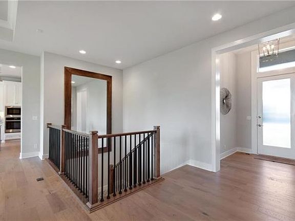 Villa living at its finest! The Avala reverse 1.5 by J.S. Robinson offers an open floor plan with tons of natural light. Great room features a trayed ceiling and a lovely gas fireplace with mantel. Hardwood floors throughout the entry, great room, kitchen and dining area. Gourmet kitchen boasts a large center island, quartz countertops, stainless appliances, gas cooktop, large walk in pantry and beautiful custom built cabinets. Soft close drawers and doors throughout the house. Private master suite with quartz double vanities, large walk in shower, upgraded tile and huge walk in closet leading into convenient laundry room. Covered deck includes stairs out to a beautiful treed yard. Second bedroom or office on the first floor with adjacent full bath. Spacious rec room w walk up granite wet bar, plenty of room for your game table and seating for watching the game! Two more large bedrooms w walk in closets share a bath with separate vanities. There are 15 solid core 8' doors, storm shelter and lots of storage.