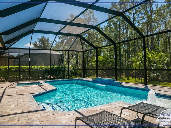 Don't miss out on the gorgeous pool home in Madison Park. Open floor plan with tile floors in all main living areas. 4 bedrooms and 3 baths with a two-car garage. Relax outside beside the large screened-in pool with fountains and spa. The kitchen boasts granite countertops and stainless appliances and a breakfast bar. Master suite has an oversized walk-in shower. Watch TV on the enormous flat screen in the living room. Madison Park is one of Naples's premier communities, offering quick and easy access to 5th Avenue restaurants, shops, and pristine beaches. Easy access to I75 gets to you to the local airports fast.