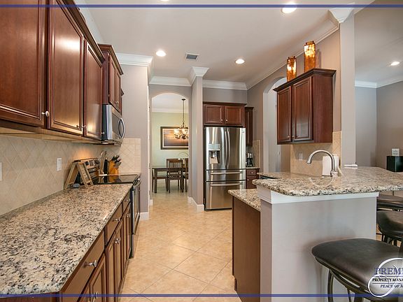 Large screened-in poolGorgeous poolBreakfast barGranite countertopsOpen floor planTile floorsFountains and spa
