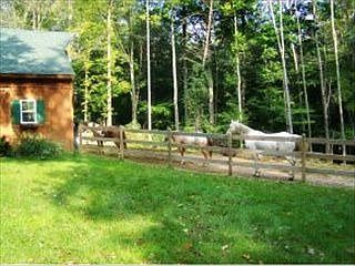 Complete info: http://fleener.CanBYours.com - Amazing retreat with both acreage and a beautiful home in eastern Monroe County. Eighteen and one quarter acres, gorgeous views.. The house has a refined rustic feeling, cathedral ceiling, two master suites, 4 total bedrms, 3.5 baths. Lower level has rec rm. w/wet bar, two of the bedrooms are on this walkout level as is the laundry with enough space for the freezer. MAIN LEVEL The great room with anchoring fieldstone fireplace is open to the dining area and the kitchen. The kitchen is an efficient L-shape with lots of counter space, nice appliances and lovely simple maple cabinets that go up to the ceiling. Every room has beautiful, magical views.The barn has 3 stalls and a tack room. Stall walls are removable if you'd rather have a workshop--and it has electricity. There is heated self watering for the horses. There is a riding ring, plus walking and riding paths encircling the ridge of this property. Ride down the hill and cross Brummets Creek Rd. to riding trails in Yellowood State Forest and Brown County State Park.