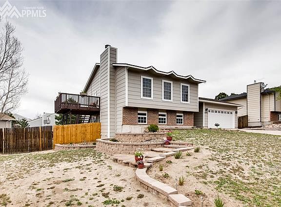 Totally update Briargate home on a very spacious lot with gorgeous views of Pikes Peak & the whole Front Range. Tiered rock flower beds and a walkway will take you from the front to the side yard. New furnace, new garage door plus new Milgard windows in 2016. Main level features a great room that leads into the dining area with a large picture window for plenty of natural lighting. The update kitchen has slab granite countertops, all appliances, a pantry, wood laminate flooring plus a walk-out to the side deck w/ views. The main master retreat features vaulted ceilings plus double closet doors. Completing the main level is an additional bedroom and updated full bath with granite counters and tile backsplash. The lower level features a spacious family room with a brick wood burning fireplace, two additional bedrooms, a updated bath and a laundry area. Extras; RV parking, shed, gazebo, security system, washer/dryer, home warranty and Academy-20 School District. This will go fast!