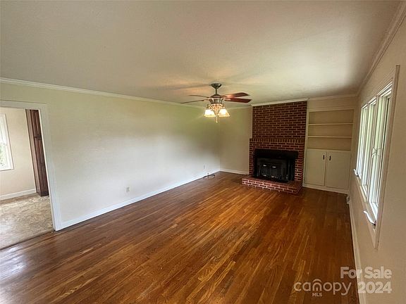 Move in Ready Brick Ranch Home in the Woodlawn Community! 4 bedrooms with 1.5 baths and full basement! Just inside the front door you will find a large living room with a brick fireplace and hardwood floors. Adjacent to the living room is the dining area and kitchen with updated cherry cabinets. Right down the hall on the main level are 3 bedrooms centered around a bathroom. The primary bedroom is at the end of the hall with its own private half bath. This home has a covered front porch and overlooks the mostly flat grassed yard with plenty of room to enjoy the outdoors. The basement can be accessed from the carport and is great for storage. There is a small outbuilding to the left of the home. Recent painting and updates make this home move in ready! Don't miss out on this awesome home! Community water through Aqua water company. No HOA, .75+/- acres. If you are looking on Zillow the address is wrong, the address is 8199 US HWY 221N. Marion, NC 28752.