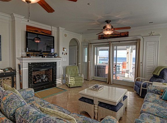 IMPRESSIVE OCEANFRONT ON THE SOUTH END! SIGNIFICANT PRICE REDUCTION! EASY TO SHOW! Highest quality coastal construction in this majestic oceanfront home with three bedrooms, 3.5 baths, elevator, marble floors, fireplace and an additional 'party room' on the highest level for those overflow guests or family gatherings. In this exquisite home with almost 2200 sq. ft all on one level (yes, no stairs!), all living flows to the ocean and the miles of quiet beach Topsail Beach offers. An elevator from the garage to the spacious dining area, granite and stainless kitchen and an oceanfront living area with fireplace assures no steps need be taken to access this beautiful home. Never rented by the owners, but it would be an excellent income producer. Each of the oversized bedrooms has its own pri te bath and there's a handsome powder room for guests. The additional bonus/party room on the 4th level of the building has a living area, kitchen and bath, perfect for the extra guests or as a game room for the kids, enjoy roof top sundecks with expansive views of Topsail Beach from the Inlet to Surf City Pier. All coastal style furnishings will convey for turn key, hassle free ownership. HOA dues includeall insurances and maintenance for the buildings. Great dune structure and sturdy coastal construction give this property protection and top quality finishes bring style and value. Location in walking distance of restaurants, Jolly Roger pier, shops and marina is the best the south e