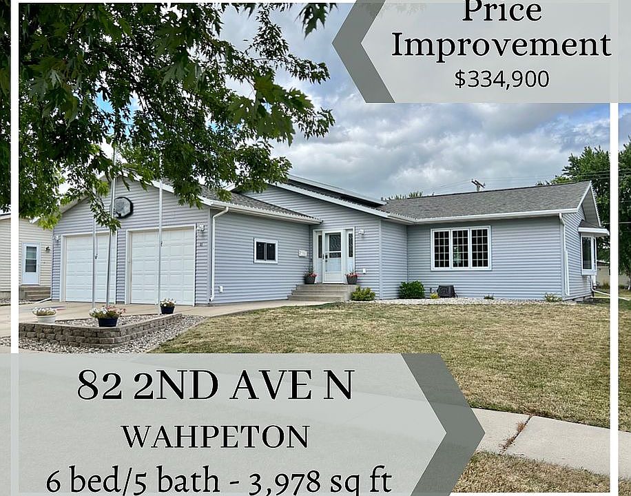 Price Improvement of over $10K! Come on over to 82 2nd Ave N in Wahpeton and see this open concept home in a convenient location overlooking the river! Close to the bike path, park, zoo, and pool. This house has so much to offer. At just under 4,000 sq ft, this beautiful home has all the space you need. There’s plenty of room for a family, guests, entertaining, home office, and more. Large kitchen with double wall oven and huge, walk-in pantry. The upstairs master bedroom has 2 closets including a spacious WIC and an en-suite bathroom complete with a whirlpool tub and shower. Basement has floor heat throughout. 2 laundry areas - upstairs washer and dryer included! Maintenance free siding and deck and freshly updated landscaping. Attached, finished and heated, two stall garage with older additional 3rd stall detached garage in the backyard that has a new roof (summer 2021) and is the perfect spot for extra parking, extra storage, or a repair/workshop area. Ring home security system included. Text or call with any questions or to set up a private showing. Buyer realtors welcome. Motivated sellers!