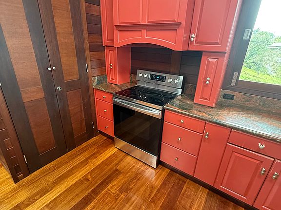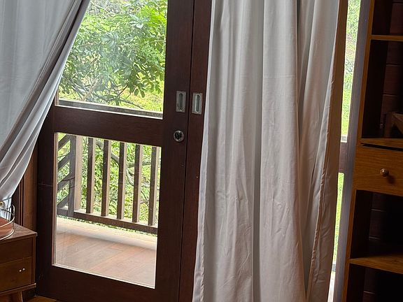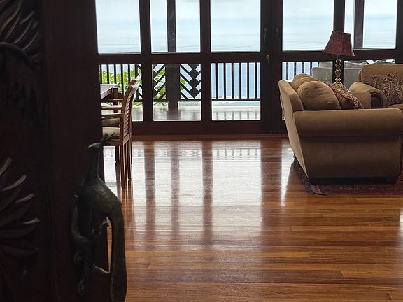 A beautiful Polynesian style home with two bedrooms and one and a half baths located in the lower part of a 5 acre farm. This home is built out of Indonesian hardwood and is a classic. Stunning views of the coastline make this home extraordinary Renter pays half of electric bill. The tenants downstairs pays the other half. The home has grid tie solar and this covers most of the electrical. No dogs, cat ok.
