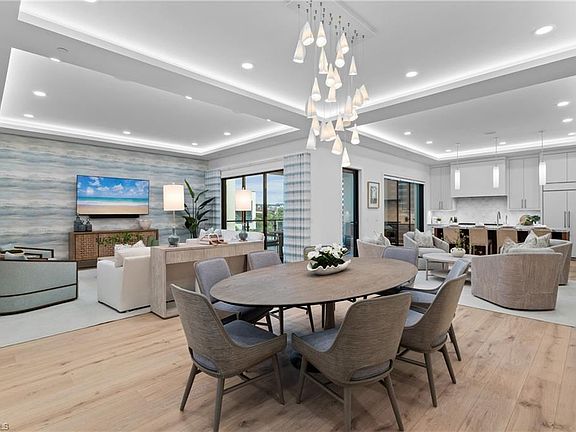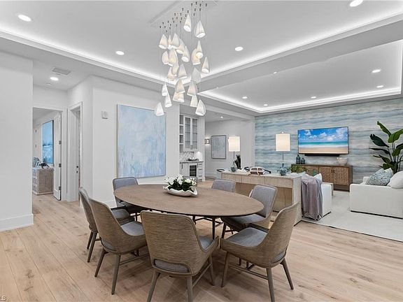 A true one-of-a-kind! Welcome to Stella Naples, where luxury meets exclusivity in the heart of Olde Naples. Built in 2024 with only nine total residences (each with their own PRIVATE ROOFTOP DECK), this newly constructed boutique building redefines upscale, low-density living, just steps from the world-renowned 5th Avenue South, historic Downtown Naples, and the white sandy beaches of Naples. Unit 301 is an extremely unique residence consisting of two units that were combined during original construction and offers nearly 4,100 square feet under air, 4 bedroom suites (each with a private ensuite bath), den, music room, 4.5 baths, two covered lanais (with motorized roll down privacy/bug screens) each with their own gas fireplace, and FOUR DEEDED PARKING SPACES underneath the building. This tastefully designed top floor, end unit condo offers an open concept floor plan with 10’ ceilings, 4 sets of sliding glass doors to the two lanais, and rich wide plank European White Oak wood floors that flow throughout. The Kitchen has been outfitted with custom Ruffino cabinetry, Cambria quartz countertops, top of the line appliances including a 48” eight burner GAS Viking range and Sub-Zero refrigerator/freezer. Just off the Kitchen is a generously sized walk-in pantry with Miele speed oven. The impressive wet bar is complete with a wine cooler, ice maker, and ample bottle/glass storage. The impressive primary suite features its own private lanai with gas fireplace, separate his & hers walk in closets with custom shelving/drawers, auxiliary washer/dryer, music room with hidden storage closet, bath with oversized shower & free standing soaking tub, and a private den. Accessed from within the condo, the private 1,000 sq ft roof top deck is the perfect spot to enjoy the Naples sunset or entertain family & friends around two fire pit areas or outdoor kitchen complete with a gas grill and refrigerator, creating the ultimate setting for sunset cocktails before dining at one of the many iconic restaurants here in Downtown Naples. A long list of special features can be found throughout: motorized shades on all windows; custom window treatments/curtains; custom wallpaper details; recessed lights in all rooms; reverse osmosis water filtration system; in-ceilings speakers; 8’ solid core doors with Emtek hardware; stained cypress wood ceiling accents on the lanais; custom Ruffino cabinetry with Cambria countertops; designer Brizo, Rohl & Kohler bath fixtures; and more! Residents of Stella Naples enjoy an exclusive collection of amenities, including a sunny Southern-exposure 24/7 heated pool, state-of-the-art fitness center with an outdoor turf area, and an elegant club room. The building also provides four deeded parking spaces, ample guest parking, and state-of-the-art security, featuring facial recognition technology and smartphone-integrated video access panels. Experience the finest in Downtown Naples luxury living at Stella Naples.