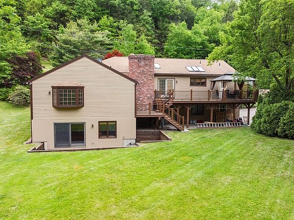 YOUR DREAM HOME AWAITS! Water Rights to South Pond! Full Recreational Lake/Pond. Entertaining will be a breeze with your gourmet kitchen with eat in area & Fireplace!.Kitchen has SS Appliances, granite countertops, breakfast bar, sliders to deck, plus the fabulous beamed cathedral ceilings w/ skylights! Off kitchen is laundry room & formal dining room.Large living room w/ bowed window. Hardwood floors plus tile in kitchen & 1/2 bath. 4 large bedrooms with closets galore! Main Bedroom has Skylights & beamed cathedral ceilings Plus walk in closet Plus private full bath with jacuzzi tub & granite counter. Spectacular lower level finished Game Room-front to back w/ pellet stove, wet bar, exercise area and sliders to wonderful back yard. Approximately 5 years ago the Central Air unit was replaced, electrical panel was replaced, main bath was updated. Pellet stove 2 yrs old in game room. Extensive Front walkway & patio aprox 4 yrs ago.2025 replaced water filtration system & HW Heater.
