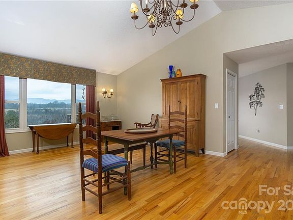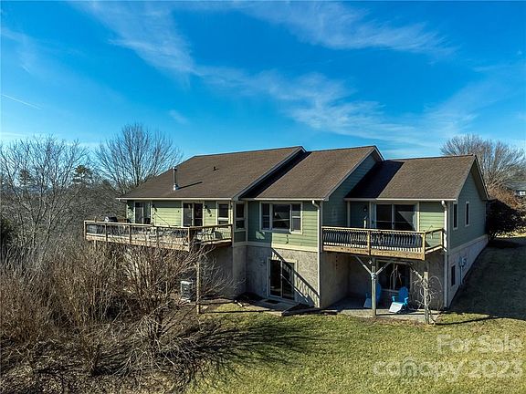 Savor picturesque sunrises and delight in mountain and rolling hill views. Welcome to easy, main-level living, and more! KIT consists of SS appliances, island cooktop & breakfast bar, and walk-in pantry. Sm-but-mighty woodstove is a charming accent. Expansive primary ensuite BR includes office/sitting rm & priv. deck. Two of three other BRs on main are ensuite. Enter bsmt by int. steps or ext. door thru 1-car gar. 1BR 1BA, huge fam/rec room, wet bar w/ bev fridge, and an eat-in area comprise this level, much of it daylight. There's abundant flex-space for your desires: gym, game or art/craft rm, and wkshop. Much unhtd storage. 2nd living qtrs, perhaps? Friends & family will adore visiting, as there are ample and comfortable gathering spaces. Fig, pear, plum fruit trees+ grow on this ~1 acre. Take a break at the subdiv's little pond. Barely north of N AVL, this lovely neighborhood has quick I-26 access and proximity to Weaverville's & AVL's eateries, shops, culture & outdoor recreation.