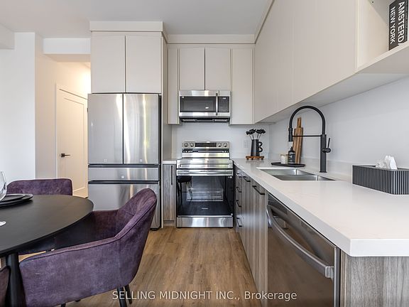 Checkmate! Lease Directly With Midnight - Your Next Move Starts Here. LIMITED TIME OFFER: $3,666 per month for your first year! (Rental amount equivalent to one month free rent). Be the first to live in this brand-new, never-occupied suite, available now! Each suite showcases a modern kitchen with light finished cabinetry, quartz countertops, and full-sized stainless steel appliances. The primary ensuite offers double sinks and a free-standing tub for a touch of luxury. Highlights include durable vinyl flooring, a spacious walk-in closet, individual hydro and water meters, and access to a shared outdoor common area. Situated near shops, restaurants, parks, schools, and Lake Ontario. Located near QEW/ Gardiner and 427, and the 501 TTC line bringing you right downtown Toronto. Since 2017, Midnight has been designing and building luxury homes, with over 1,500 units planned across multiplexes and rental communities. Lease directly with Midnight for a seamless property management journey. Unfurnished options are available.