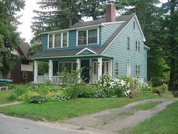 Residential, Cottage - Saranac Lake, NY This 3 bedroom house has charm, hardwood floors, french doors and built ins. Main floor bedroom is presently a guest room or den. Bathrooms and kitchen have been redone. Working fireplaces in living room and master bedroom. Lovely front porch overlooking perennial garden. New roof over porch area. Was a 2 unit when purchased. Former 2nd floor kitchen is now a laundry room combined with utility area..Shared driveway.
