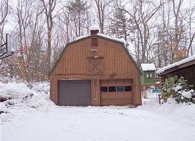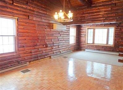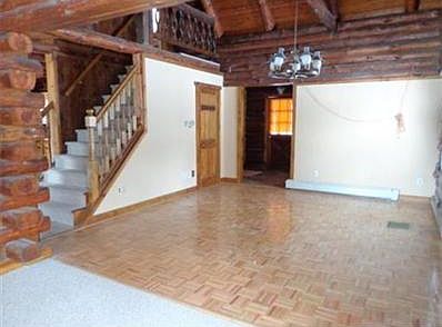 Custom Built One Owner Log Cabin offering many great features! Wide open flr plan featuring living rm & dining area w/ post & beam vaulted ceiling along w/ spacious kitch and first flr bdrm & full bth. Second flr loft w/ master bedroom & half bth. Walk out basment a plus offering an additional bdrm w/ a walk- in cedar closet. All new berber carpeting & freshly painted throughout. Spacious two car detached garage w/ a second flr loft for storage. This home features c/ar, c/vac, alternate heating.