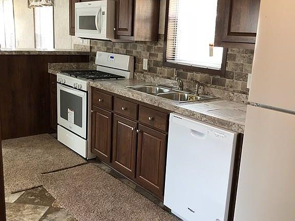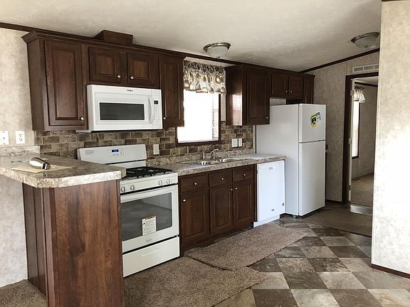You'll love this large open concept brand new 2 bedroom mobile home! This home offers a master bedroom with a full bathroom, a large eat-in kitchen with breakfast island, and a separate laundry room! A must see! One small dog permitted per house. Park residency approval required.