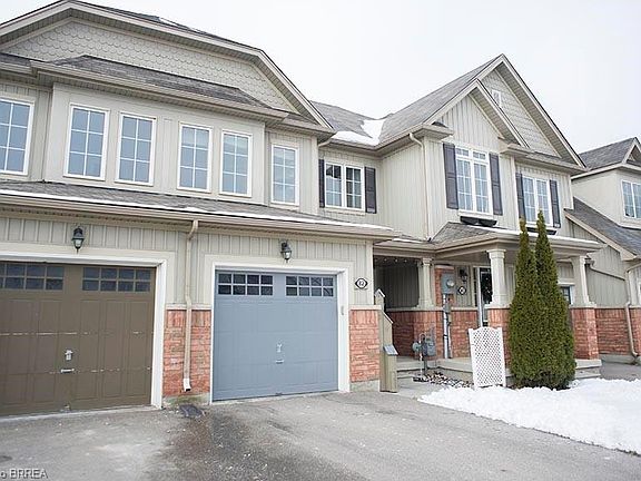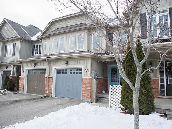 Welcome home to the sought after community of "West Brant" where this freehold "Southbrook" model is located on a quiet street with no backyard neighbours! Offering 3 beds, 2.5 baths and a single car garage, this home is well maintained and perfect for today's first time home buyer, single professional or investor looking to add to their portfolio. The front entrance is charming with a coat closet and powder room that adds convenience. The open concept layout offers neutral tones and easy to maintain laminate flooring. The living area is bright and spacious with pot lighting and a gas fireplace that's perfect for cool winter nights. The kitchen offers a mocha toned cabinetry with stainless steel appliances and ample storage, with a convenient coffee bar area and separate pantry. A dinette space is bright and steps away, with an added breakfast bar for additional seating. The patio doors lead out to a fenced yard with a nice size deck and storage shed. The backyard pond adds a serene feel with no direct backyard neighbours. Make your way up the hardwood staircase to the second level where you will find a large master bedroom with walk-in closet and ensuite bathroom with tub/shower combo and quartz countertops. Two additional good size bedrooms and a full bathroom with quartz countertops complete the space. The basement is unspoiled and perfect to add additional living space.