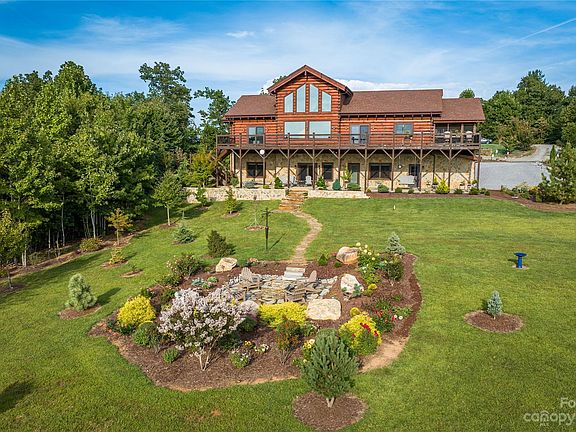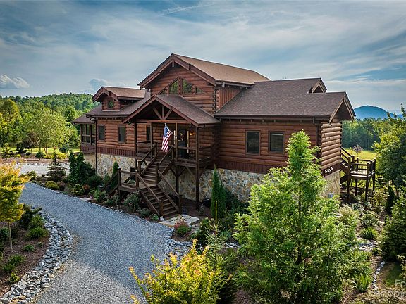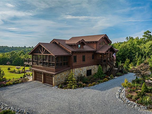 As you approach this gorgeous mountain home, you'll be awed immediately by the beautifully landscaped 2.26 acres that welcome nature & neighbors alike. This gentle meadow features a fire pit, orchard & numerous natural areas. The moment you open the front door you'll be mesmerized by scenic layered mountain views showcased through the picture windows that stretch to the high cathedral ceilings. Unique wood accents throughout. Open floorplan flows seamlessly from spacious living room to dining & kitchen, inviting friends & family to gather. The floor to ceiling stone fireplace is a statement in itself. You'll want to cook in this kitchen surrounded by large granite counters, island & adjacent bar. Custom cabinetry w/ tons of storage. LG SS appliances include 2 wall convection ovens, dishwasher & fridge. Italian ceramic white farm sink. Primary en-suite includes soaking tub & walk-in shower. 3 en-suites in total, 1 guest BR & bonus room. Downstairs family room is ideal for entertaining.