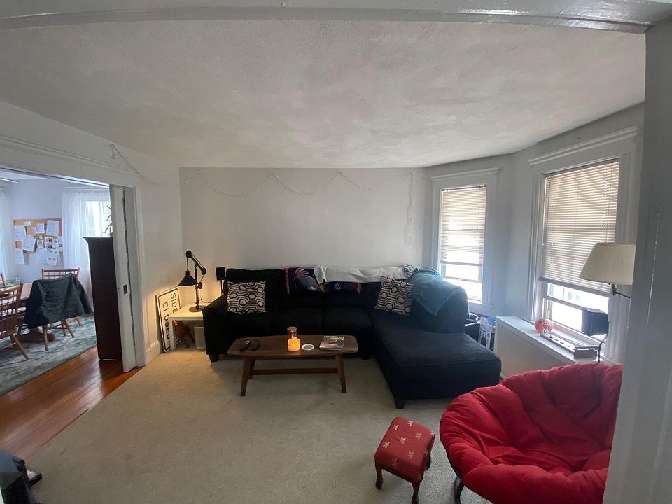 Large second & third floor 5 bed/2 bath duplex in a two family house 10 minutes away from the Davis Square and the Redline T. This large apartment features a foyer at the entry, large living room, dining room, eat-in-kitchen with a pantry, five spacious bedrooms with closets and two full bathrooms. Gas heating, hardwood floors throughout, stained glass, high ceilings, free laundry and storage in the basement, shared patio and shared driveway.