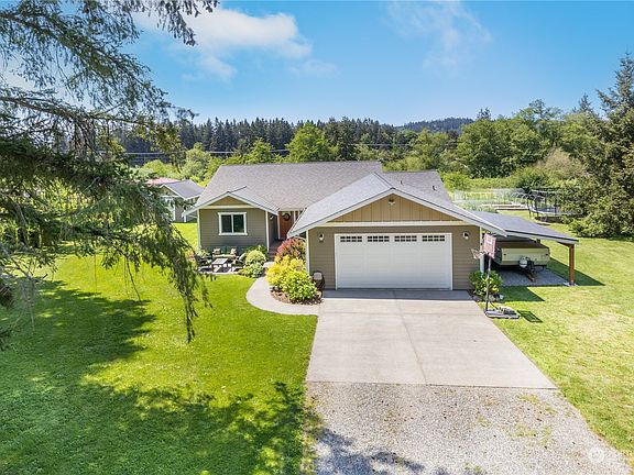 Situated on a picturesque 1 plus acre parcel, on a dead end street this exceptionally well maintained home awaits you!This 4 bedroom home plus den has a fantastic flow with guest bedrooms opposite the primary and features a great room that opens to your wonderful patio for extended outdoor living space. As you step into your magnificent yard you will love the raised bed gardens, perennial gardens, fruit trees, & berry plants/bushes equipped with automatic drip line irrigation for no-hassle watering. You will also enjoy amazing sunsets and Chimacum Creek running across the end of your property. Within 5 minutes of schools, Finn River Cidery, Corner Store & farmer's market & across the road from trail access to HJ Carrol Park.
