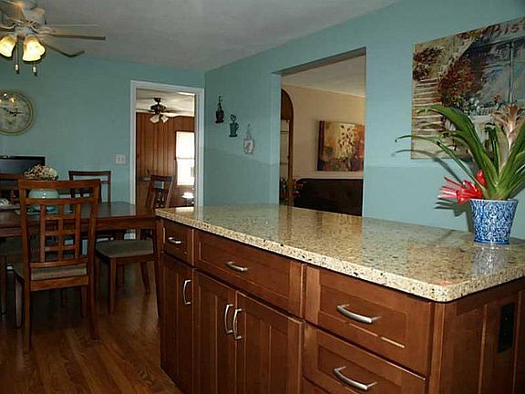 2 year old kitchen with granite and stainless steel. Sun room off family room. Original hardwood floors. Lots of storage and a large utility room/work room in basement. Gas stove in basement.