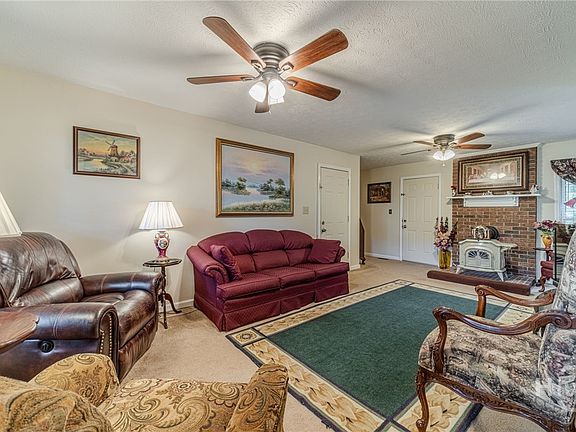 Wood burning stoveWorkshop areaFenced in backyardFour-sided brick ranch homeRocking chair front porchStainless steel appliancesLots of cabinet space