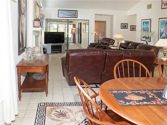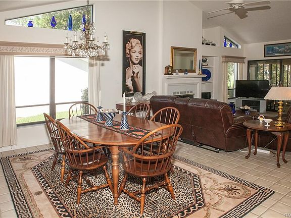 Very well maintained and move in clean 2/2/2 Oakleaf villa with many nice extras. Brand new A/C and 5 year new roof. Tile floors in all but bedrooms. Large eat-in island kitchen, great for a baker, with stainless steel appliances, beautiful bay window, and attached laundry room with washer & dryer included. Great room has electric, remote controlled fireplace, custom lighted window valences, cathedral ceilings and built-in wet bar. Adjoining porch is enclosed with double pane windows for a light and bright feel to villa. Marilyn Monroe can convey. Air conditioned garage and lovely landscaping.