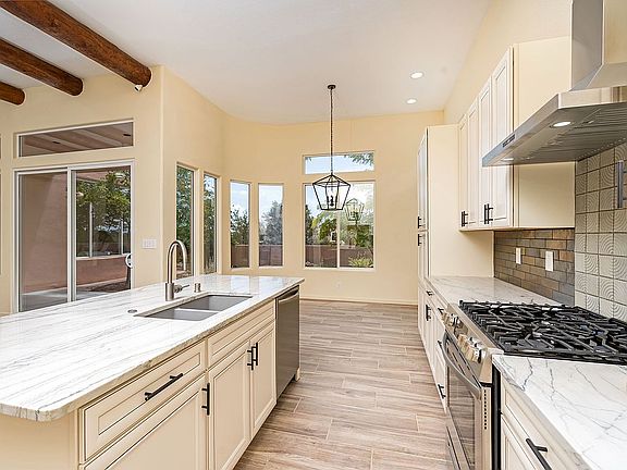 This beautifully remodeled Chaparral model in Rancho Viejo features tall ceilings and lots of windows for natural light. A large formal living and dining room plus spacious family room off the large kitchen and sunny breakfast nook with lovely views are great for entertaining. Vigas and a kiva fireplace with venetian plaster make for a great focal point, and the split bedroom floor plan also features an open office / workout room. The spacious master bedroom is complemented with and oversized walk in shower and closet. The recent remodel includes upgraded tile, appliances, high end quartz countertops, cabinets electrical & plumbing fixtures. Come see this stunning home today!The home is turn key and located in the popular community of Rancho Viejo with over 15 miles of walking trails and community parks and is only 13 miles to the Plaza.