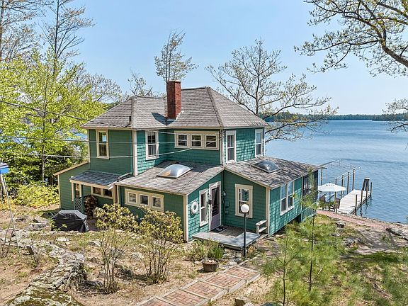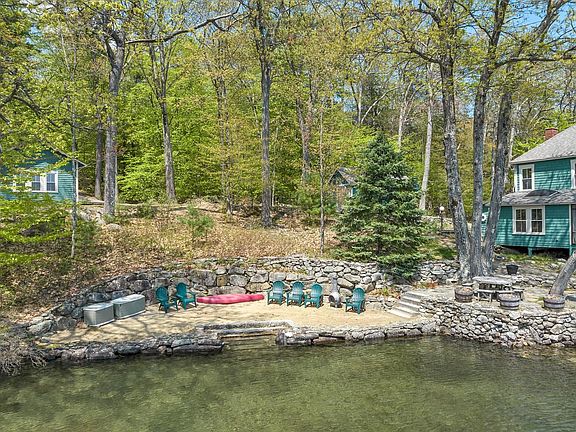 This charming, original lakehome is on an outstanding .91 acre lot with over 200 feet waterfront. Enjoy long and picturesque views from the oversized screened porch while enjoying your morning coffee or while dining in the evening. The perched beach provides a quiet seating area and play space for children. An oversized U-shaped and covered dock with a lift has deep water docking for your boats. The three-season home has gas heat and an original wood burning fireplace which is perfect for early spring and late fall use. A galley kitchen is well appointed and has had recent updates. The primary bedroom is on the main level and shares a three-quarter bath. The main living room includes a spacious dining area and opens to the screened porch. The second level includes three additional bedrooms and a second bath. A great bunk house with half bath and outdoor shower is perfect for guests or grown children. There is also a small barn with laundry and storage. The lot is fabulous and is surrounded by fine homes and well-kept cottages. Enjoy this classic home or build a new home on this prime Meredith lot. Transfer of title shall be after Labor Day due to summer rentals.