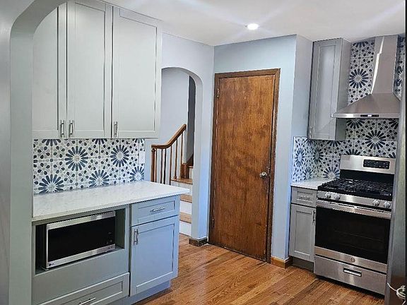 This charming split-level home features 4 bedrooms and 2 full baths, situated on a quiet end street. Freshly painted and equipped with a newer washer and dryer, it boasts hardwood floors throughout the main and upper levels. As you enter, you're welcomed by a bright and airy living room that flows into the formal dining area. The spacious, brand-new kitchen is highlighted by a stunning quartz countertop. A few steps up lead you to three lovely bedrooms and an updated full bath on the upper level. From the living room, just a few steps down, you'll find another bedroom and a brand-new full bath on the lower level. Access to the garage and a large, private backyard is conveniently located on the ground level. Additionally, there's a partially finished basement perfect for entertaining or working out. With numerous upgrades and located in a highly rated school district, this home is a must-see!