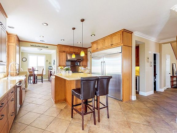 Gorgeous, highly upgraded dream home with panoramic mountain and city light views in the exclusive Painted Trails Community. This home is an entertainers delight! It features vaulted ceilings, a dramatic staircase, an open and spacious floor plan with approximately 3500 square feet, 4 bedrooms, and a gourmet Eat-In Kitchen with a huge, quartz center island, stainless steel GE Monogram appliances 6-burner gas range, double oven, warming drawer, warming lights, ample storage and a Butlers Pantry with dual wine refrigerators. Large built-in Home Office downstairs with beautiful French doors open to Living and Dining room. Huge Master Bedroom with two walk-in closets, balcony and a newly updated luxurious Master Bath with large soaking tub, separate shower and double sinks. Third level loft boasts approximately 500 SF of open space and 4 large windows making it a light and bright bonus area which can easily be converted into two separate bedrooms. This is a great house for entertaining! Backyard has a large, wood burning fireplace, built-in BBQ with ample bar top seating to enjoy the evenings and this home's beautiful sunset views! Plantation shutters, crown molding and upgraded flooring throughout. The 3-car tandem garage includes a built-in workbench and features plenty of storage. Association amenities include two pools, parks, basketball courts, gorgeous walking/biking trails and enjoy membership at Lake Mission Viejo.