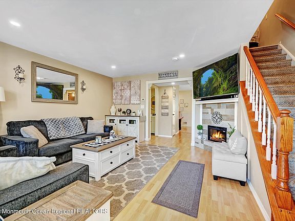Picture Perfect! This beautifully maintained 2 bedroom, 1.5 bath home invites you to experience exquisite updates and a location that is unparalleled. From the moment you enter you will see an open & airy layout, beautiful wood floors, fireplace with brick surround, recessed lighting, designer window treatments, stunning kitchen with custom cabinetry, granite counters, new SS appliances, generous breakfast area overlooking your tranquil patio and fabulous laundry /utility room. The second floor offers generous sized bedrooms with ample closets and storage and updated masterbath . Relax daily on your private patio with its gorgeous Cambridge pavers. Near all modes of transportation, shopping and minutes to the shore areas. This home is a must see!