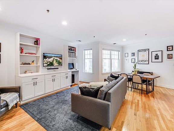 Step into luxury living at 82 Clinton, Unit 3F! This stunning 2-bedroom, 2-full-bathroom condo is nestled in the heart of vibrant downtown Hoboken, offering the perfect blend of style and convenience. Bathed in natural light, this residence boasts beautiful hardwood floors throughout, creating a warm and inviting atmosphere. The recently renovated kitchen is a chef's dream, featuring sleek white quartz countertops, stainless steel appliances, and a chic subway tile backsplash. Custom cabinetry cleverly conceals a convenient stackable washer/dryer, maximizing space and functionality. Both the primary bedroom and the versatile den are generously sized, each accompanied by its own en-suite bathroom. The den easily transforms into a second bedroom, home office, or stylish guest suite, adapting to your lifestyle needs. The primary bathroom has been thoughtfully remodeled with modern finishes, adding a touch of contemporary elegance. This must-see condo is situated in an intimate, elevator building and includes the coveted amenity of a deeded parking space in the attached garage. Enjoy the unbeatable location at 82 Clinton, placing you mere steps from the PATH, Ferry, NYC Bus, and a plethora of trendy shops, acclaimed restaurants, and vibrant nightlife. Don't miss the opportunity to make this exceptional Hoboken condo your new home!