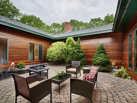 Fall in love with this gorgeous contemporary. Set on a 6 acre wooded knoll surrounded by 850 acres of nature, you have the best of both worlds - privacy and easy access to I-91, restaurants and shops. 5,110 SF of living space, 5 (6) bedrooms, 5 baths, finished walk out basement-plus accessory apartment with a private entrance provides options for a home office and/or guests. The core of the first floor opens to a window lined interior courtyard bringing natural light into the house. 6' tall windows throughout and 12' vaulted ceilings give a light and airy feel. Architectural details include hand crafted maple doors, cherry trim, hardwood floors and elegant arches. The first floor master suite has a fireplace, 2 walk-in closets, dual vanities and 2 person jetted tub. Add the covered wrap around porch and you have a great place to relax and entertain. Complete with a 3 car garage and 1,800 SF heated steel building, this home is a piece of paradise. A must see!