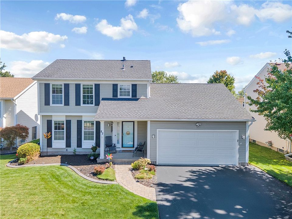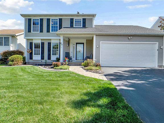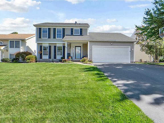 Welcome to 82 Constance Way West, a meticulously maintained colonial-style home showcasing pride of ownership throughout. The residence features an eat-in kitchen with all appliances included, seamlessly open to the family room for everyday comfort. A formal dining room and living room offer additional space for entertaining. Upstairs, the primary bedroom includes a vanity/dressing area that leads to a remodeled main bath. Two additional bedrooms provide flexibility for family, guests, or office space. The property has been thoughtfully updated with an architectural roof (2013), newer windows, and a new driveway and garage door, adding value and peace of mind. A partially finished basement provides extra storage and utility space. Outdoors, the rear stamped concrete patio overlooks a fully fenced backyard, creating a perfect setting for recreation, relaxation, and gatherings. In the front, a paver sidewalk adds curb appeal and convenience. A two-car attached garage offers direct access to the home, while a separate storage shed provides added functionality. This property combines updates, functionality, and charm — truly a must-see! Please note that there are recording devices at the property and will remain ON during showings. Delayed showings begin September 11th, 2025, at 4:30 PM. Delayed negotiations until September 17th, 2025, at 10:00 AM.