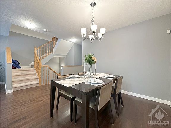 A wonderful place to call home! Discover this Beautiful Executive Townhouse in the heart of Centrepointe. Spacious Minto Birkshire II model, Immaculately maintained freehold townhome w/ approx. 1789 square ft. This well designed townhome offers a living/dining room, Kitchen & Breakfast area on the main level. Hardwood floors in Main floor. From the kitchen you can easily access the dining room, living room or eating area. The breakfast nook overlooking the backyard with plants. The huge primary bedroom with a 5pcs ensuite and walk-in closet, the spacious 2 bedrooms, full bath completes the 2nd floor. Relax and have a movie night with the family in the lower level family room. Plenty of storage space. close to lots of recreational amenities. Upgrades Roof. 2013, Stove. 2022, Hardwood floor. 2018. Offer presented at 6:00pm February 23rd. Must See!