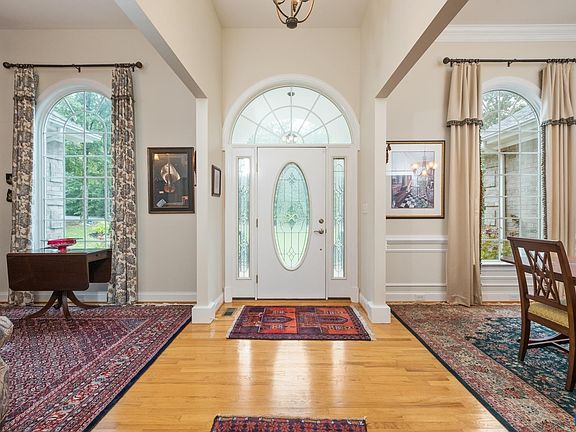 Welcome to 82 Creek Rd! This property is nestled on 5.31 acres at a cul-de-sac, with plenty of mature trees for privacy. The Georgian style home features skillfully crafted quoin brick masonry, brick arches with keystones, and stately pillars that flank the front porch. The covered porch is surrounded by vibrant colors and lush landscaping. The grand feeling continues as you step inside the foyer. The library to the right features a beautiful wall of custom cherry built-ins, with a sliding ladder to reach the highest shelf. The primary suite is spacious, with a large en suite bathroom. The star of the backyard is the fenced-in salt water pool with large patio, perfect for summer pool parties! The well pump with wiring and filters were replaced, and an ionization system was added last year. Gas logs were serviced a few months ago. HVAC is 5 years old and is serviced twice per year. Refrigerator is 5 years old, and electric range with air fryer is a year old. This well loved home is ready for you.
