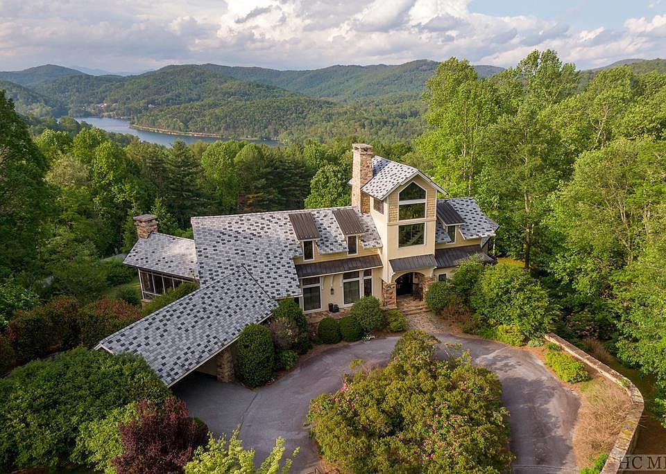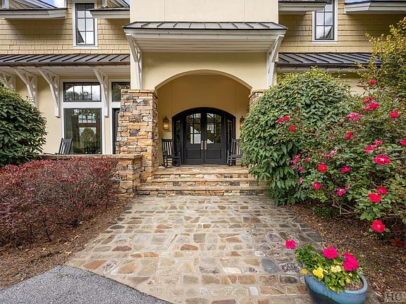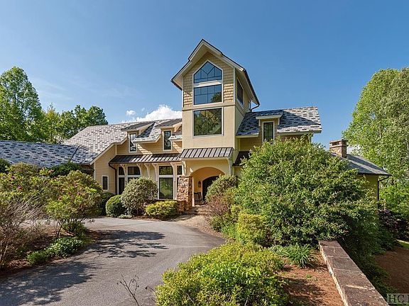 Presenting the magnificent "Dreamcatcher" estate – an opulent retreat that comes fully furnished and move-in ready. Located within the prestigious Trillium Links & Lake Club community, you'll find luxury and comfort at every turn. The Links clubhouse overlooks a verdant golf course with awe-inspiring mountain vistas, while the Landings clubhouse sits on the picturesque Lake Glenville shoreline. Take advantage of various water sports and exclusive private boat docking for members. Spread across a lavish 2-acre paradise, the "Dreamcatcher" is impeccably designed and furnished, ready for your immediate enjoyment. As you approach this architectural marvel, a flagstone pathway ushers you to majestic mahogany double doors, unveiling a striking floating staircase. Abundant natural light streams through large windows, illuminating the spacious living area with soaring 13-foot ceilings. The seamless blend of indoor and outdoor living evokes an atmosphere of tranquility and elegance. Imagine hosting memorable gatherings in the plush living and dining area, which flows effortlessly onto a grand flagstone terrace. Impress your guests with culinary delights from the cutting-edge chef's kitchen, equipped with top-tier stainless steel appliances. Unwind in the open-air screened porch, featuring a stacked stone fireplace – the perfect setting for intimate evenings with a drink in hand. Find solace in the lavish owner's suite, complete with roomy walk-in closets, a warm gas log fireplace, a multi-purpose sitting room or office, and a private hot tub deck. The second floor offers a serene haven, with three additional bedrooms, a family room, and a wet bar, all isolated by soundproof ceilings for optimal privacy. Ascend to the third-floor observatory to experience breathtaking 360-degree views of the unspoiled mountain scenery. Having been featured in "Leading Residential Architects," the "Dreamcatcher" estate is a true testament to refined living.