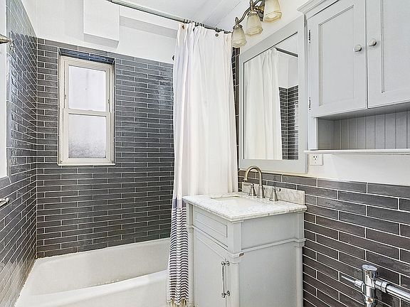 Space abounds in this lovely corner home offering approximately 1,300 sqft of gracious pre-war proportions for all of life's modern needs. Greeted upon entry with a thoughtful foyer, complete with two closets, the question of where to store your coats, shoes and bags has been answered. The large eat-in kitchen with dishwasher and ample cabinets opens to a dining (or perhaps office) area and an enormous and sunny living space. Unit 1J boasts two windowed bathrooms, one of which has been recently updated with a glazed gray subway tile in keeping with the home's period roots. Both bedrooms are generously sized, including an ensuite bedroom which could easily be laid out to accommodate two sleeping spaces or serve as a truly magnificent primary suite. The possibilities for creating your perfect layout are many!