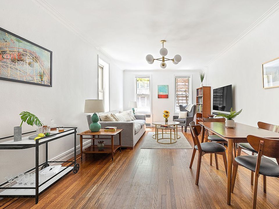 Beauty, space and location – you’ll find all three in this fabulous 2 bed, 2 bath pre-war co-op in Windsor Terrace, just two blocks from Prospect Park! This beautifully renovated apartment, with arches galore, is simply enormous. A combo of two apartments, this unit gives you the flexibility to have multiple office spaces, a dining room (in one of the foyers), and the possibility of creating a third bedroom. See alternate layout attached. You’ll enter to find a large foyer, and huge living room with 2 exposures. There’s plenty of room to relax and or entertain here. Walk through the arches to the newly renovated windowed eat-in-kitchen, with plentiful cabinetry and quartz counters, stainless steel appliances and a dinette. There is a large and useful office space. Beautiful French doors separate the office from the master bedroom, which has 2 windows. The second bedroom has two exposures and is huge. There are two renovated black and white subway tile baths – each with pedestal sinks and a window. There is also a large windowed laundry room (which could easily be used as a nursery or 2nd or third office.) Additional amenities include 7 large closets, hardwood floors and high ceilings. Two storage areas come with the unit. This apartment faces the back of the building – and is quiet and peaceful. This beautiful pre-war building is perfectly located on a quiet leafy green block in Windsor Terrace. (although the address is 40 Ocean Pkwy, neither the building nor the apartment face Ocean Pkwy). This elevator building has a live-in super, a common garden and the building is pet friendly. A rare opportunity – it’s an easy stroll to Prospect Park, the F/G trains and and a stone's throw to all the fabulous new eateries on Prospect Avenue and Fort Hamilton Pkwy, including Cena, Le Paddock, Della, Adirondack Tavern, Poetica, Hamilton’s and more.