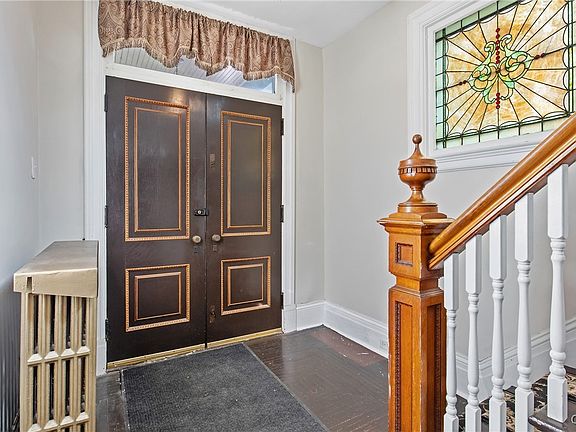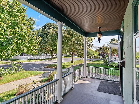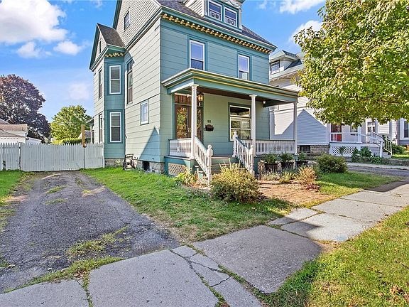 Charming neighborhood colonial with beautiful curb appeal, plenty of living space and thoughtful updates. The inviting covered porch is a great spot for enjoying time outside in the warmer months or to decorate for each season! Throughout your visit, notice detailed woodwork, beautiful hardwood floors, the modern kitchen, updated bathrooms and more! This home had most windows replaced just a few years ago and the exterior repainted in 2023. Extra storage is always appreciated... a full walk-up attic, roomy basement and loads of space in the 3-bay garage & shed out back! Complete with 2 driveways, fenced yard and a mature garden with established grape vines, blueberry bushes, a strawberry patch, golden raspberries, and hardy passionfruit vines!