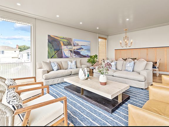 "Island Breeze"-Newport's newest luxury waterfront rental. Aptly named, you can catch the coastal breezes off the patio while taking in the panoramic view. Modern new construction features clean lines, floor-to-ceiling windows, and neutral contemporary furnishings. East- and south-facing water views across Easton's Pond, Easton's Beach, and Newport's Cliff Walk with direct access onto the water via the Pond walkway. A cozy, second-floor den separates the suites, offering a large-screen TV, water views, and privacy. 6 bedrooms available; the primary is a water view suite with a KING bed and deck; TWO additional suites with water views and decks, both with en-suite baths; one with a KING bed, another suite with 2 QUEEN BEDS, and a third suite with 1 QUEEN bed, while two additional bunk rooms offer more flexible sleeping options with a shared full bath. A south-facing deck with a grill is available for al-fresco dining, and a water-view fire pit is a cozy place to gather in the evenings. Nature lovers can watch the sun and moon rise across the water while capturing glimpses of elegant shore birds such as egrets, herons, and swans that call Easton's Pond home. A dog may be considered. There are variable pricing options for the entire house, excluding the owner's suite.