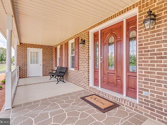 This classic brick front colonial sits atop a picturesque 3 acres. The large front porch allows you to enjoy the wonderful scenery. Bright foyer welcomes you with hardwood floors and chair rail molding. The carpeted living room includes a wonderful window seat. There is a formal dining room when extended family visits. The U-shaped kitchen includes stainless appliances and a porcelain backsplash. The breakfast nook and family room include hardwood flooring and chair rail molding. Beyond this is a large sunroom. Upstairs are 4 large bedrooms. The master suite includes laminate floors, a walk-in closet, and a luxury ensuite bath. Master bath features double bowl vanity, 3ft. shower with floor to ceiling tiles, and a 6ft jetted soaking tub. The lower level of the home is fully finished. It adds ample living space - w/ a large rec room and study. There is also a large utility room for laundry and storage. Outside there are 2 concrete patios and a pavers patio completely wired for a hot tub! Other exterior features include the insulated and finished attached 2 car garage, and the 2 car detached garage. Detached garage could easily double as a workshop with storage above! The entirety of the property is surrounded by board fencing. This includes an acre and a half horse paddock. The home is absolutely beautifully landscaped! With its amazing layout, upgrades throughout and beautiful acreage - someone is sure to make this dream home a reality. Make sure that it is you! Call for your showing now!
