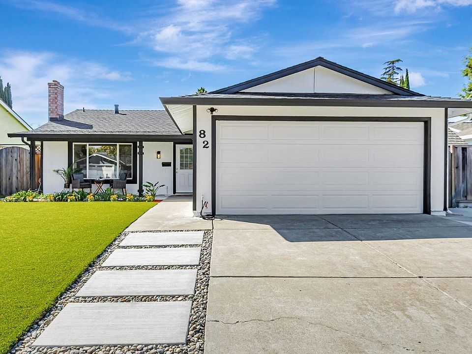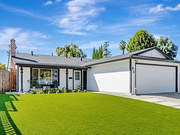 Cute as a button, this charming home is sure to impress! Step outside to pristine landscaping with high-end turf in both the front and backyard, a spacious gazebo perfect for summer BBQs, and a side yard featuring a strawberry garden, oversized planter boxes, and a convenient storage shed. The solar lease provides significant savings on electricity, making this home as efficient as it is beautiful. Inside, the bright and open floor plan offers 4 bedrooms and 1.5 bathrooms across 1,360 sq. ft. of living space. Enjoy new luxury laminate flooring throughout, complemented by fresh interior and exterior paint. The remodeled kitchen is a true highlight, complete with an apron sink, ample cabinetry with dual lazy Susans, a butcher block island with storage, and a new dishwasher. The tranquil living room features a cozy fireplace and oversized coat closet, while the updated bathrooms include decorative touches and a stylish pocket door. Ideally located near an elementary school, shopping centers, Kaiser Santa Teresa, and major freeways, this home offers both comfort and convenience. Dont miss your chance to make it yours!