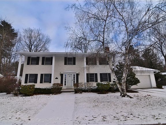 This one owner home built in 1975 has a great location in Burlington's South End. The custom-built colonial offers striking curb appeal with its impressive Doric columns and white brick façade. A gracious front hall leads to a formal living room and large family room with fireplace. Head through the spacious, open eat-in kitchen to a sweet sunroom. The mudroom also gives access to a ¾ bath and a large laundry room with additional storage. Upstairs, the east/west aligned primary suite enjoys both morning and afternoon sun and offers a large walk-in closet and 3/4 bath. Three additional bedrooms, one with built-ins could quickly convert to a home office. Extra storage space in the attached garage and basement. The nice level lot is hedged along the back property line for privacy. Close to UVM, Medical Center, Rice High School, and the bike path. Front columns are decorative, not structural, and can be removed.