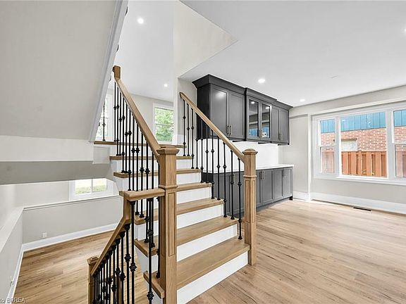 Discover the epitome of modern living in this exquisite detached backsplit home. Featuring 3 generous bedrooms and 4 well-appointed bathrooms, this home is designed with family comfort in mind. Situated in a tranquil, family-friendly community, it offers the luxury of backing onto a scenic park, perfect for family outings and leisure. The property has been fully renovated with top-of-the-line finishes, including quartz countertops, oak railings, and sophisticated pot lighting. The spacious, family-sized kitchen is a culinary haven, boasting extra cabinetry and ample storage solutions. Recent upgrades include new windows, a fresh exterior, and a new garage door with an advanced opener. The great room impresses with its vaulted ceiling and patio doors that lead to a new deck, ideal for entertaining. Strategically located near excellent schools, parks, and a bustling shopping center featuring the new Costco, this home also provides excellent highway access from its desirable north-end location. Embrace a lifestyle of elegance and convenience in this exceptional property. Make your appointment today !
